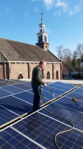 Toch verminderen we ons elektriciteitsverbruik, waardoor er meer zonnestroom overblijft voor de buren. De Energiecommissie en het CvK hebben een kleinere boiler geïnstalleerd, en LED-lampen en andere zuiniger apparatuur. Het verbruik daalt daardoor flink. Mooi is ook dat de kroonluchters met LED lampen tegenwoordig een veel warmere sfeer in de kerkzaal geven.